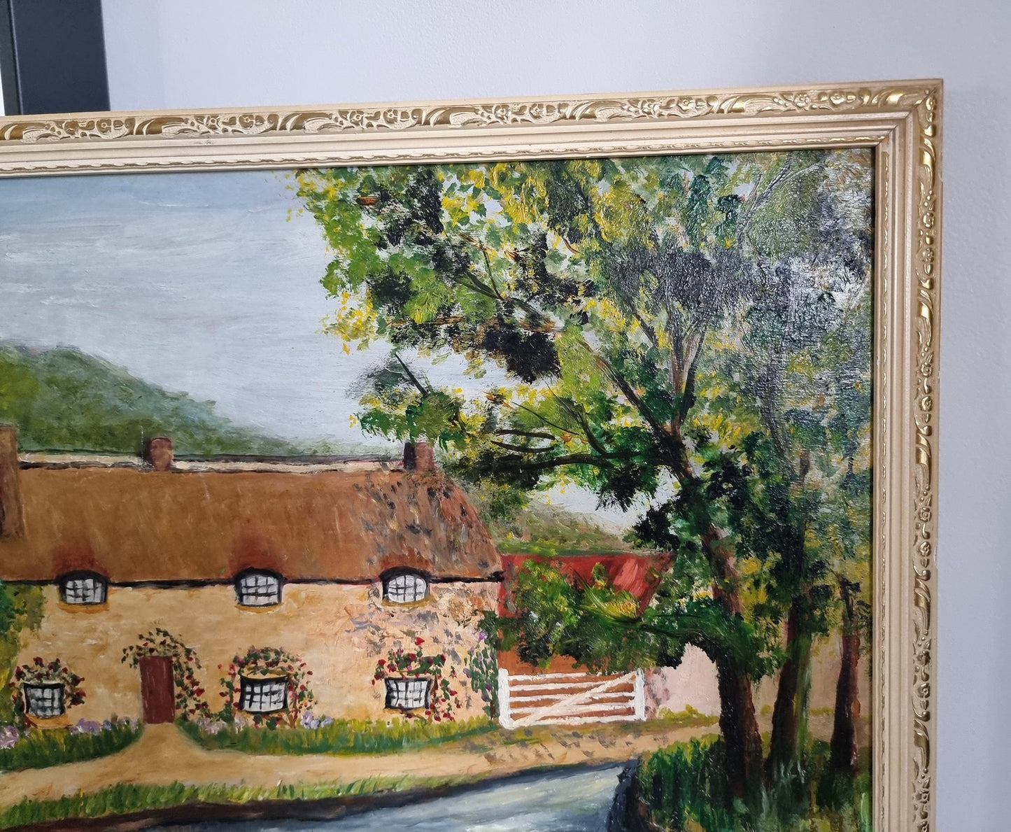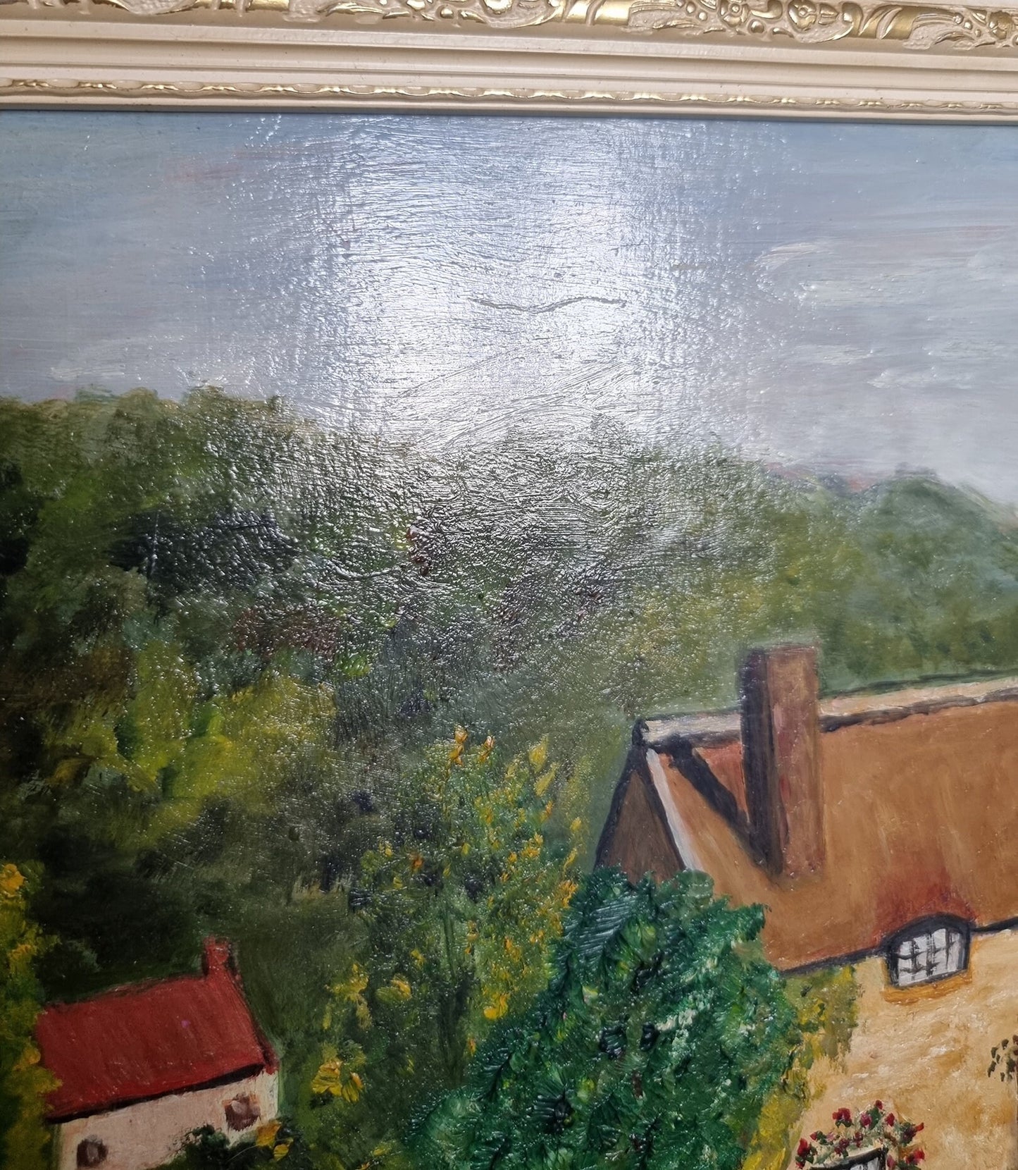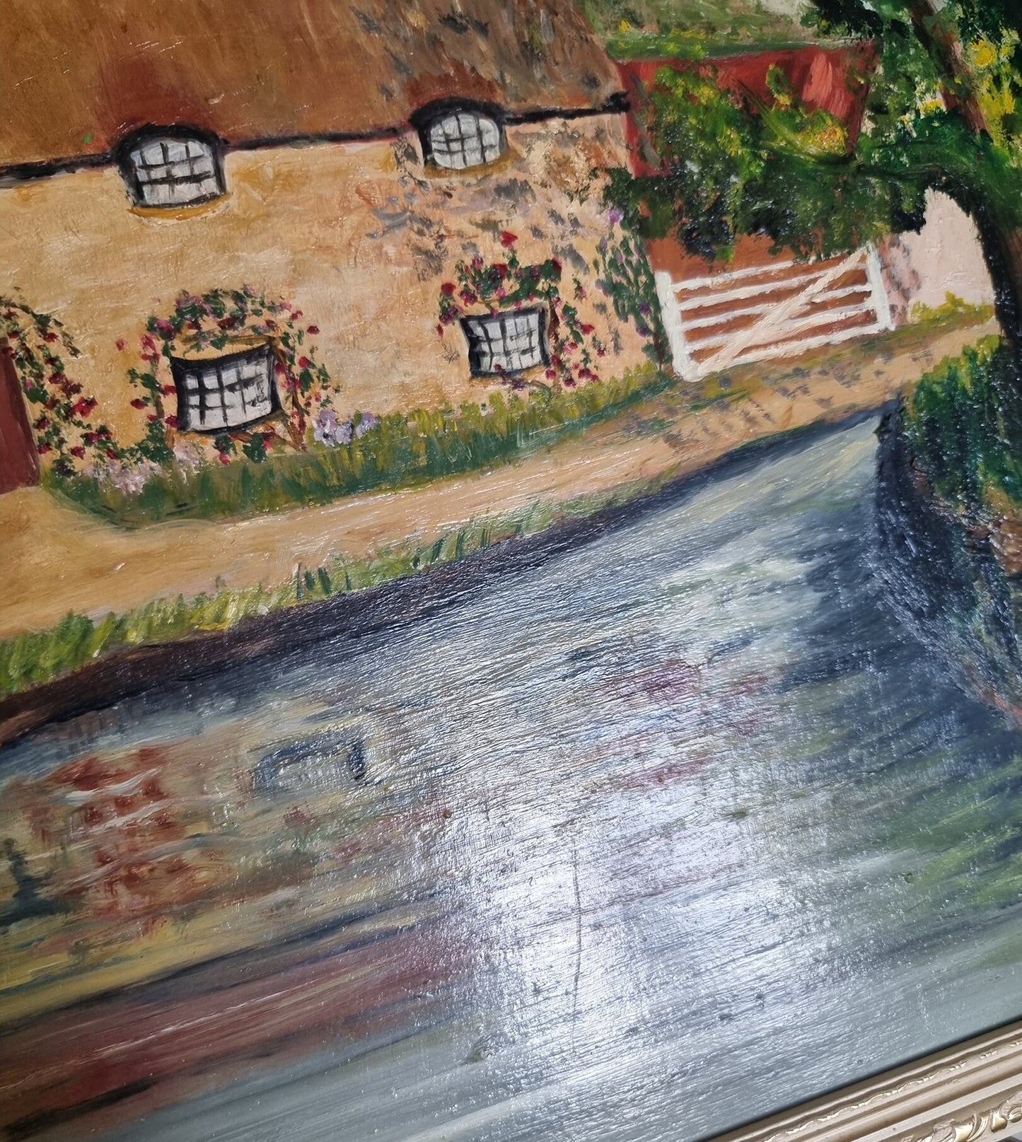 Hand painted on board in beautiful condition with minor age related imperfections (please see last two photos) and the frame has some slight wear and discolouration.