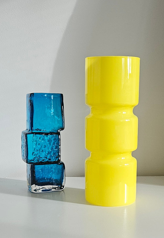 Retro funky Habitat Fitz yellow glass table lamp in amazing condition and ready to add some fun and funk to your home decor. The design is reminiscent of the mid-century era, making it a great addition to any vintage or retro themed room. It's great for use as a bedside table lamp or living room accent. Handmade and retailed by Habitat.