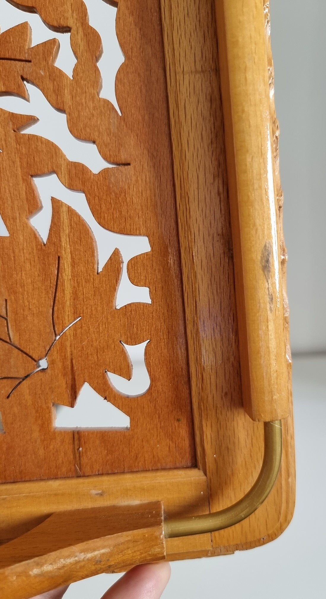 Vintage carved wooden serving tray with handles in beautiful condition.