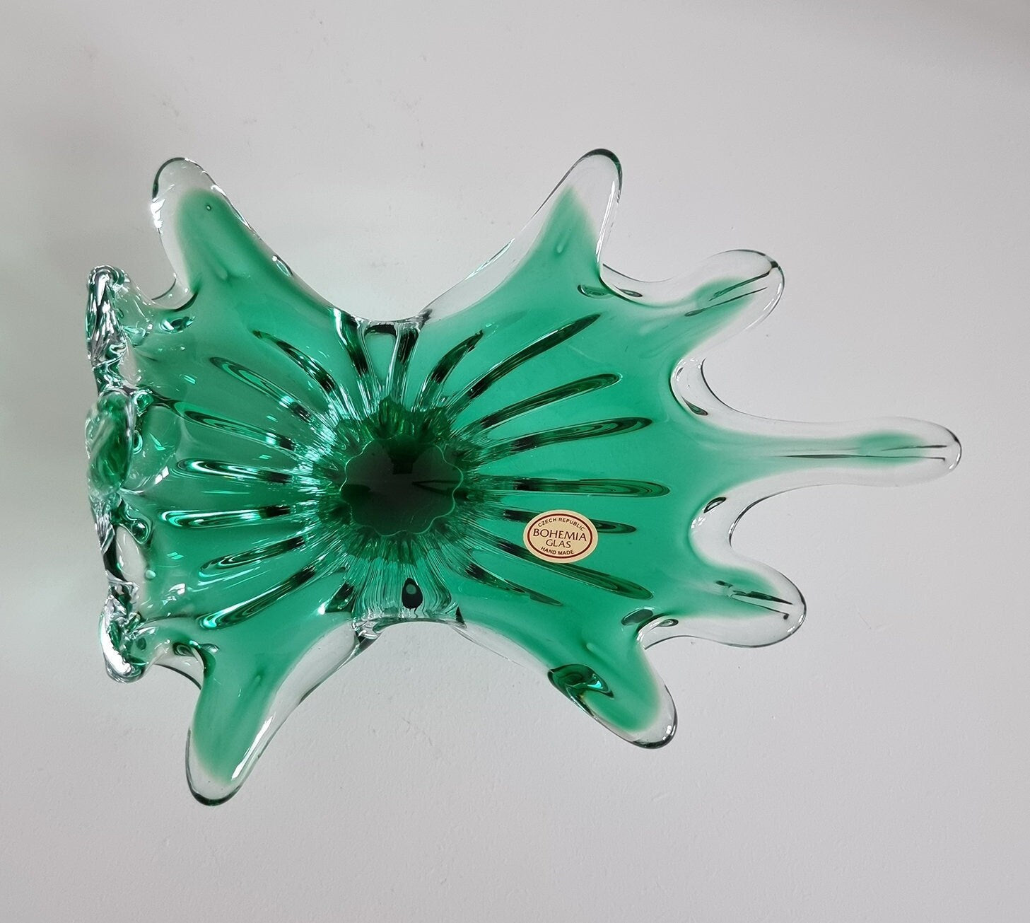 Vintage Czech Bohemia art glass dish in beautiful condition with some age related scratches on the base.