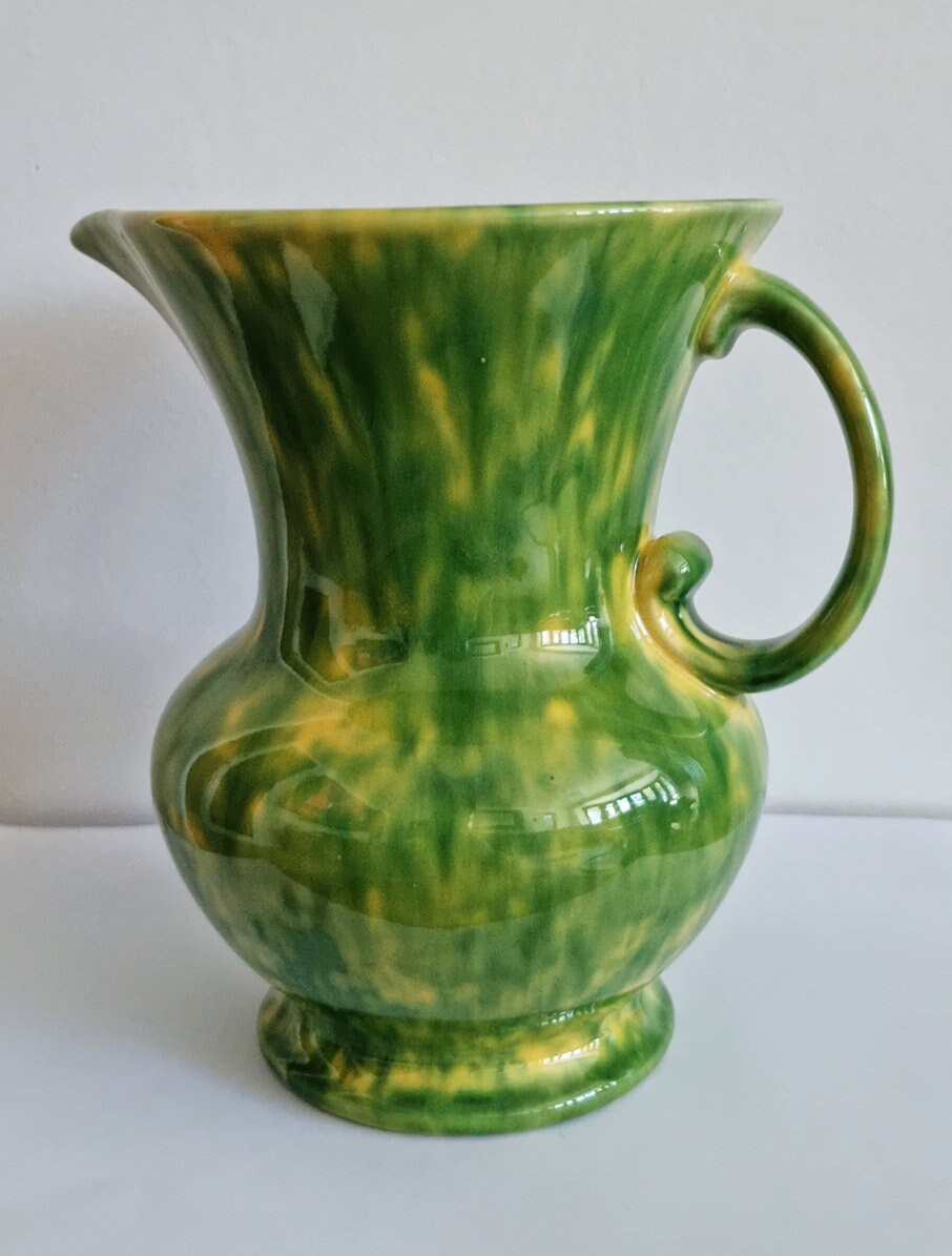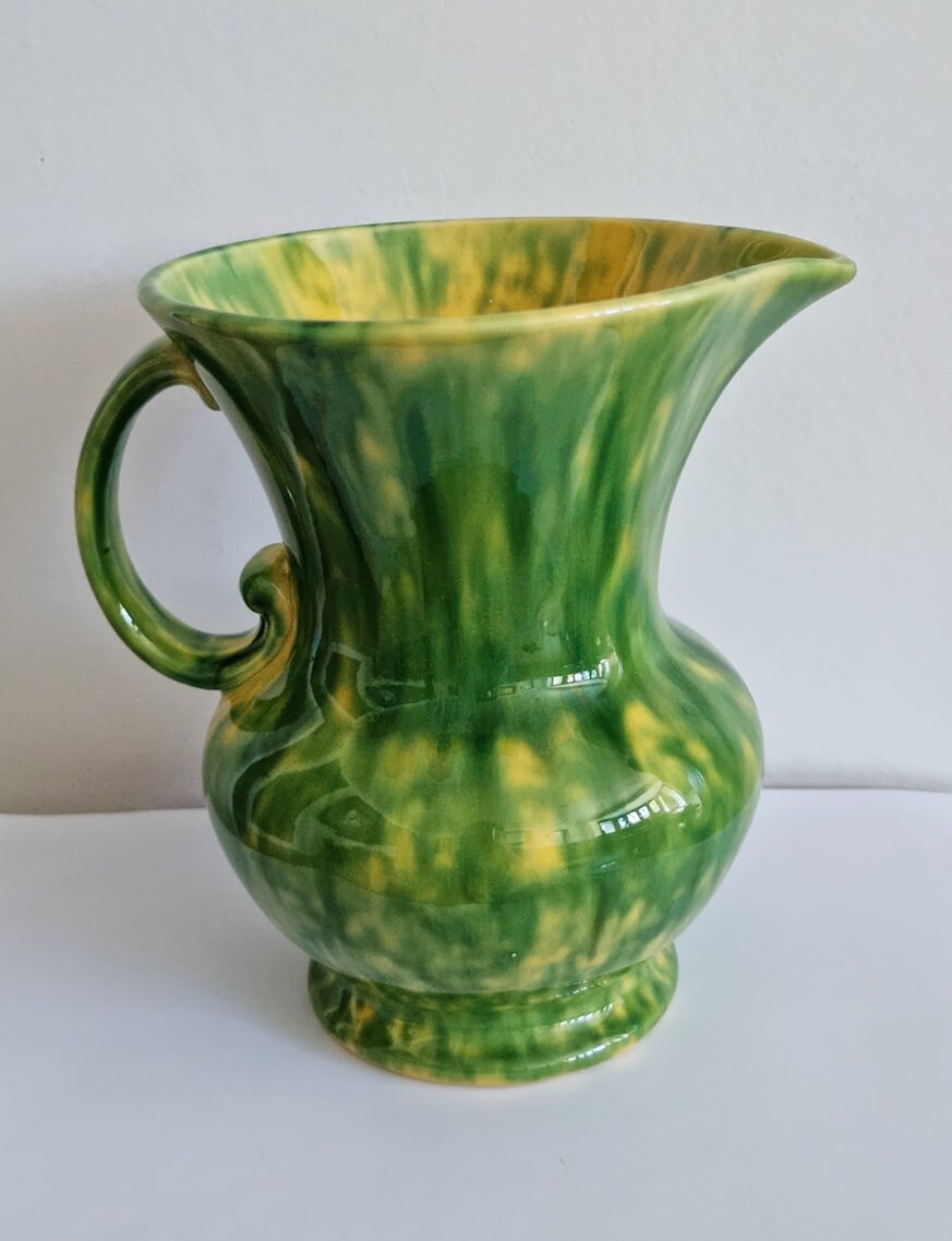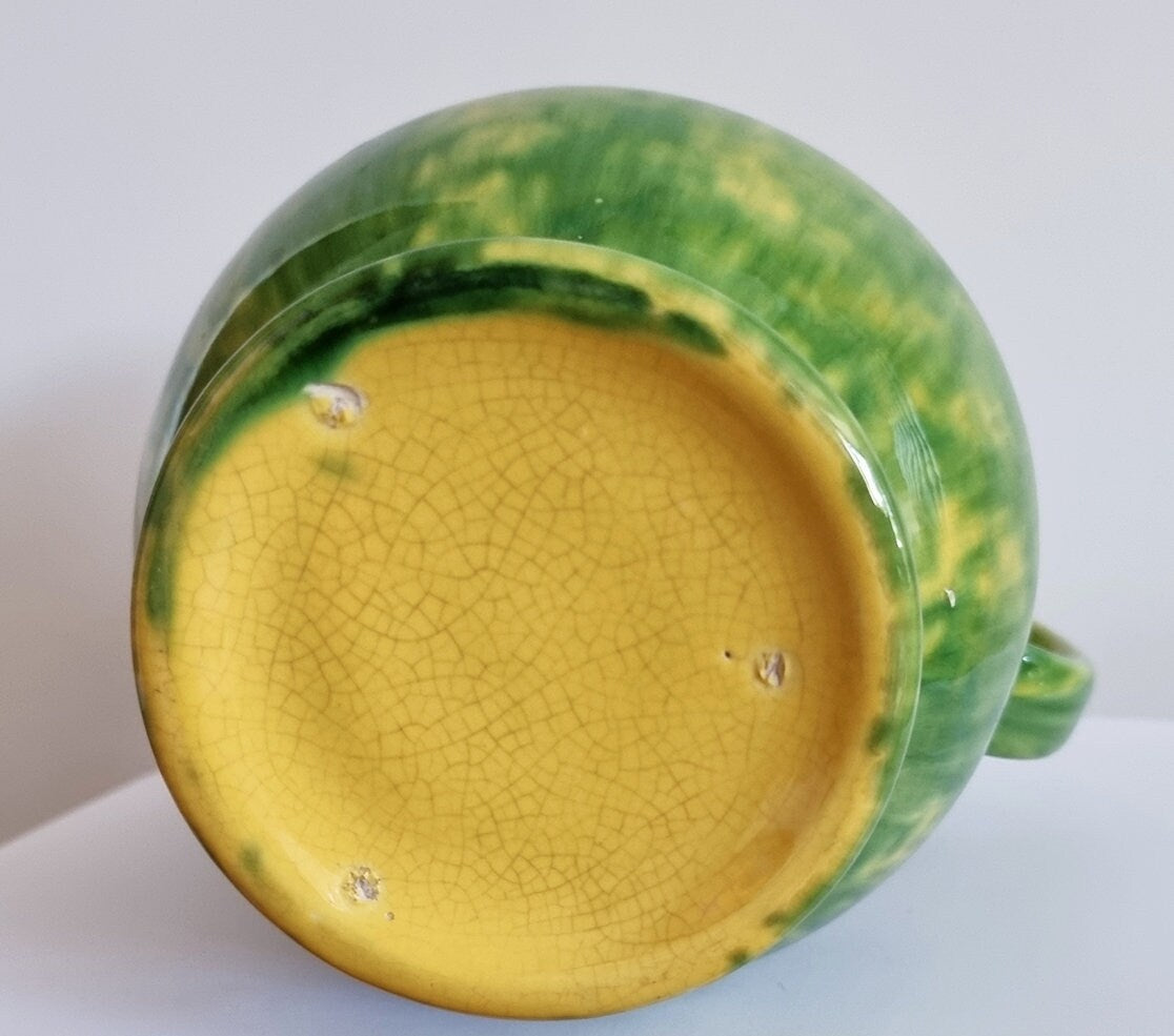 Vintage Green & Yellow Mottled Glaze Ceramic Jug