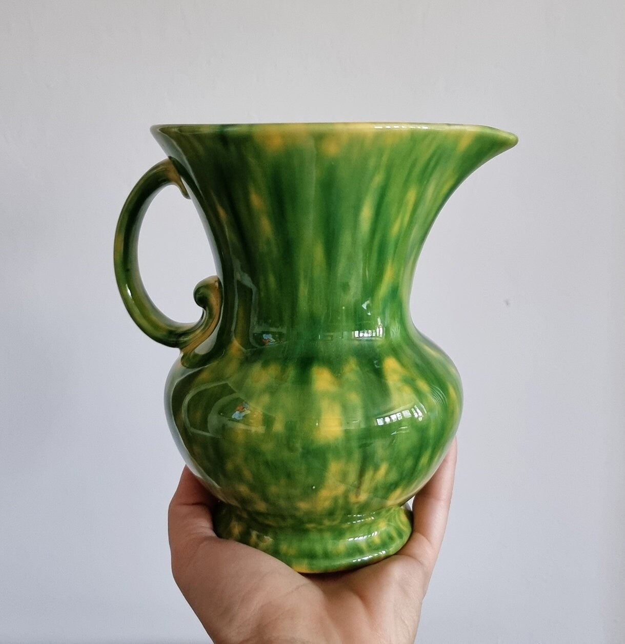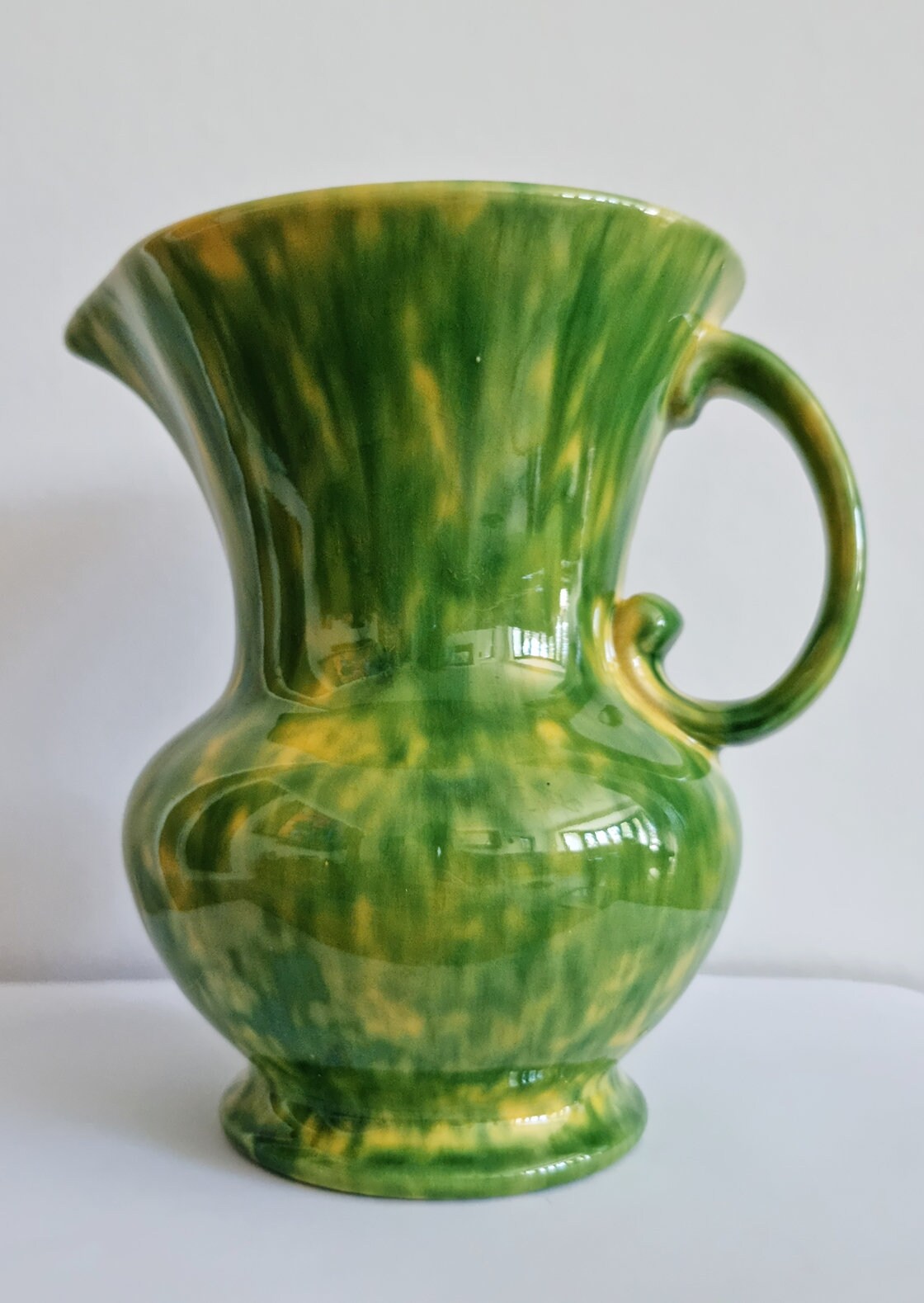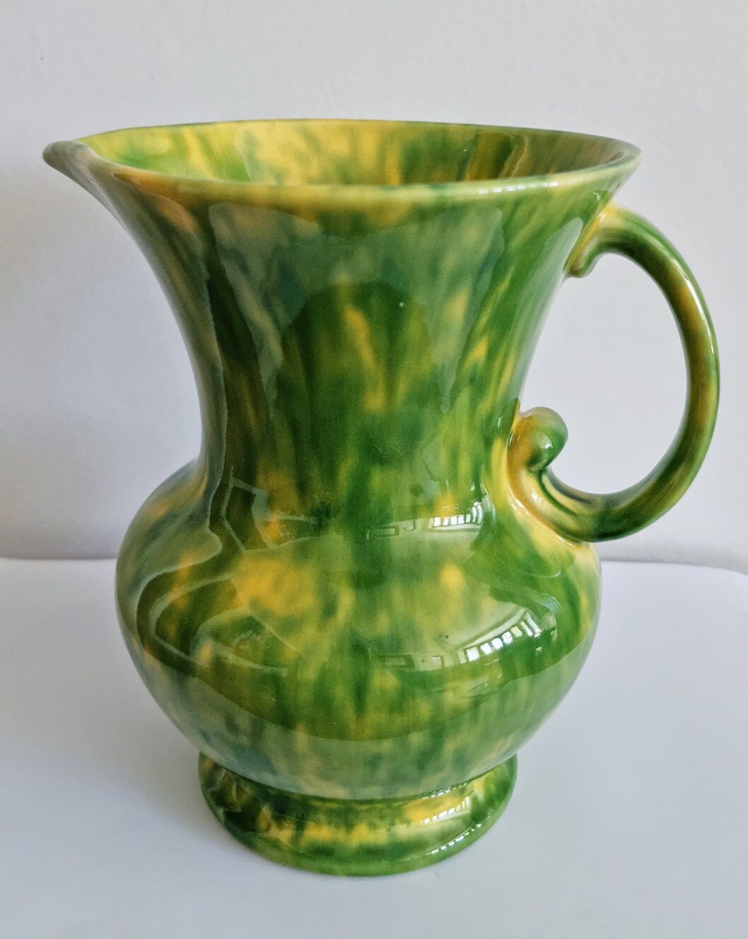 Vintage Green & Yellow Mottled Glaze Ceramic Jug