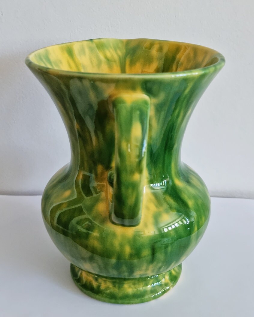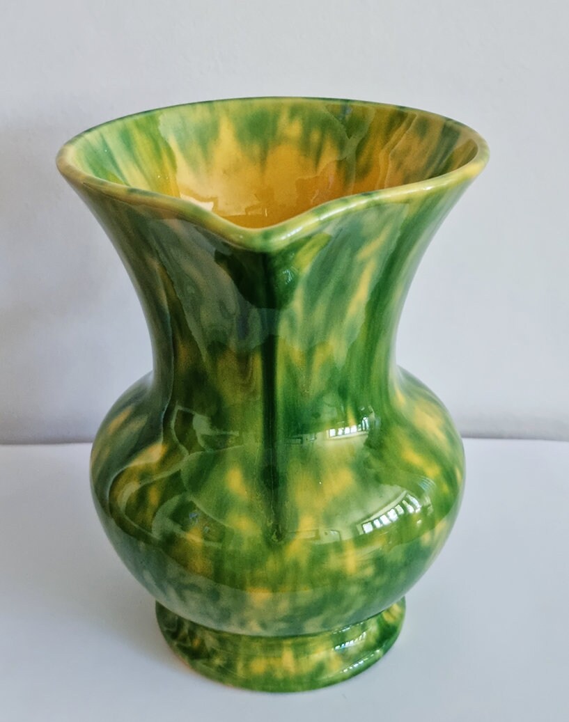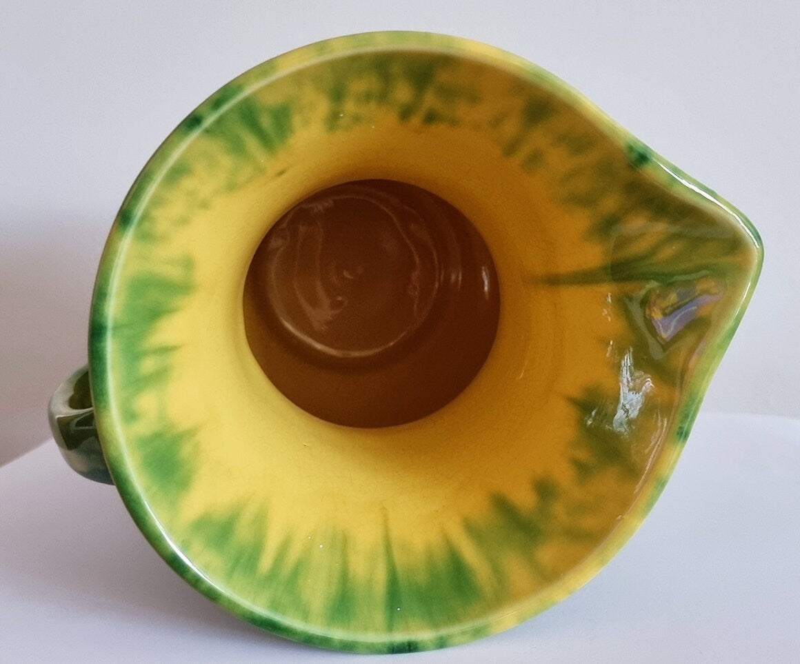 Vintage green & yellow mottled glaze ceramic jug in beautiful condition. This pretty vase will brighten up your home :-)