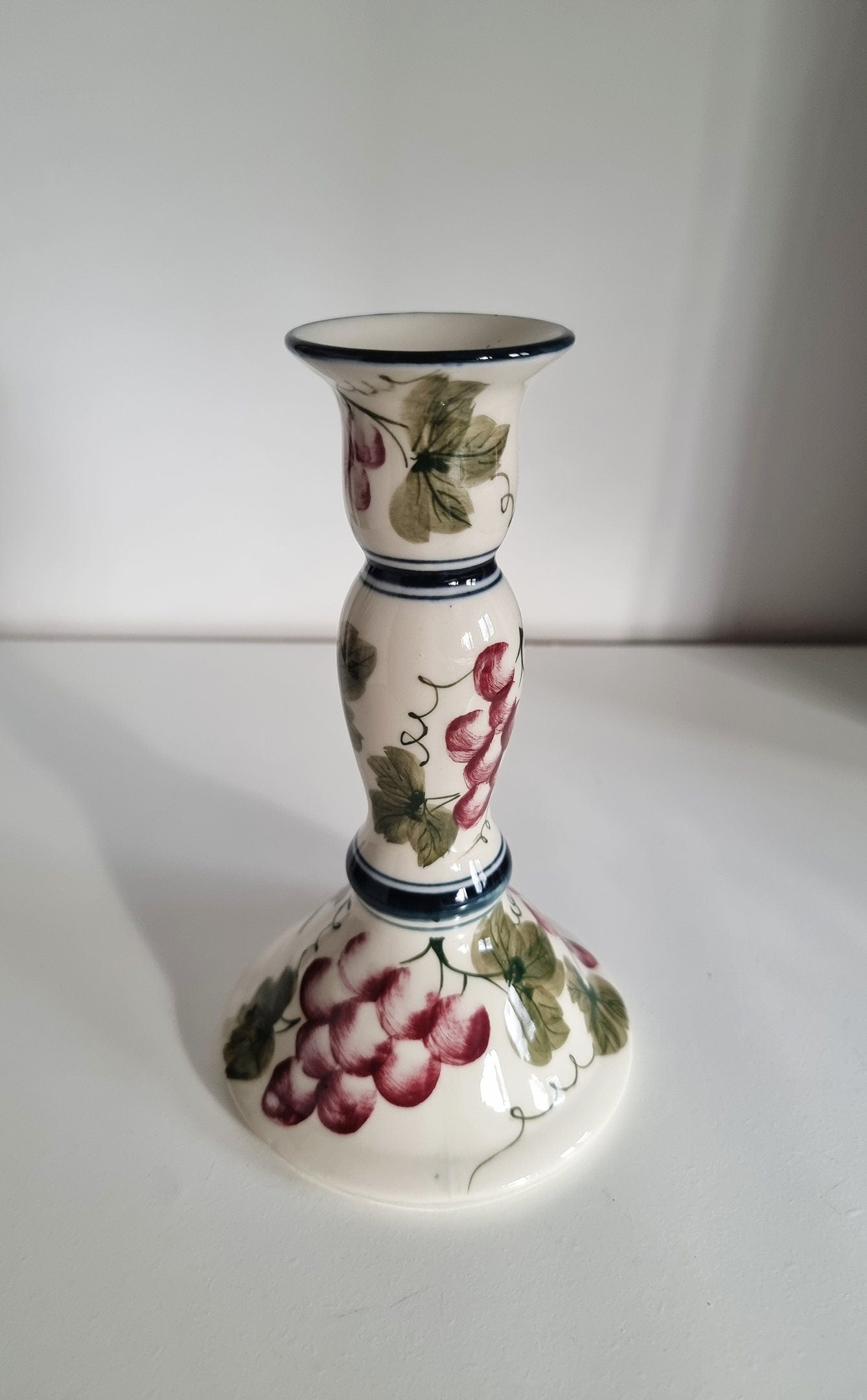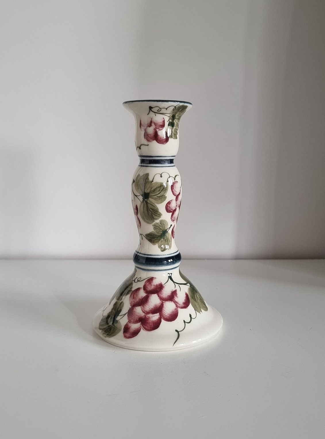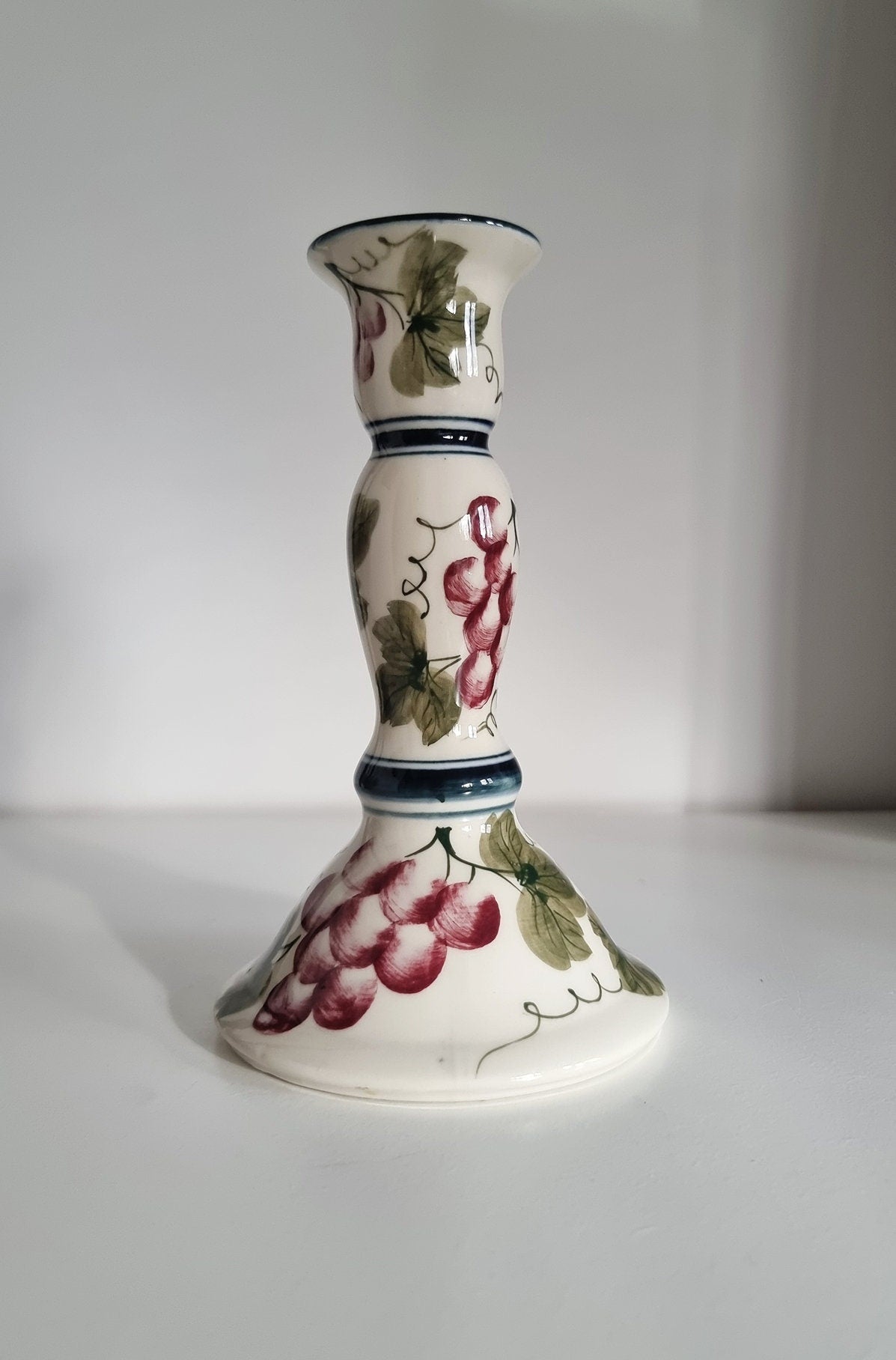 Vintage Hand Painted Ceramic Candlestick With Grape Design