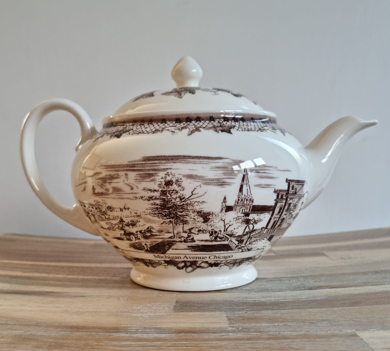 Vintage Historic America ll "Michigen Avenue Chicago" Teapot By Johnson Brothers in beautiful condition with small imperfection to the lid. (last photo)