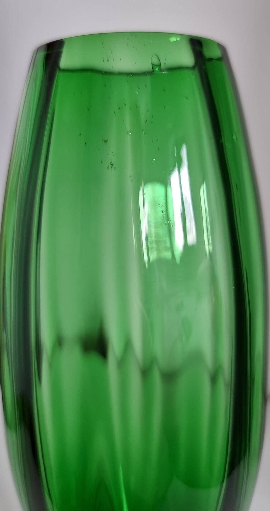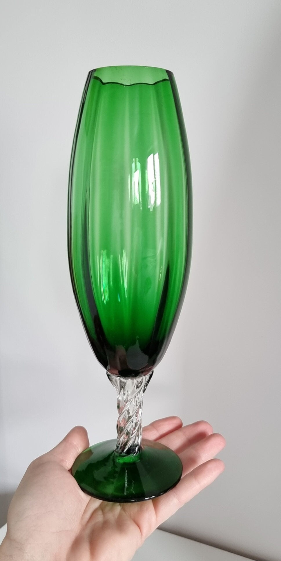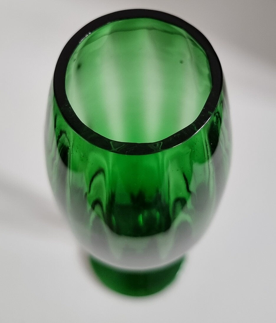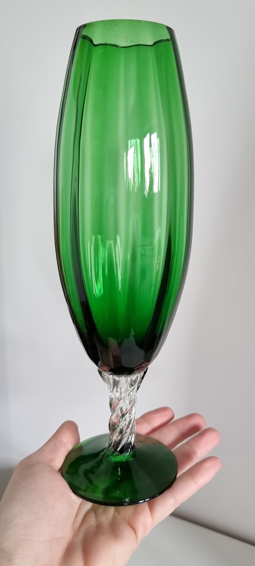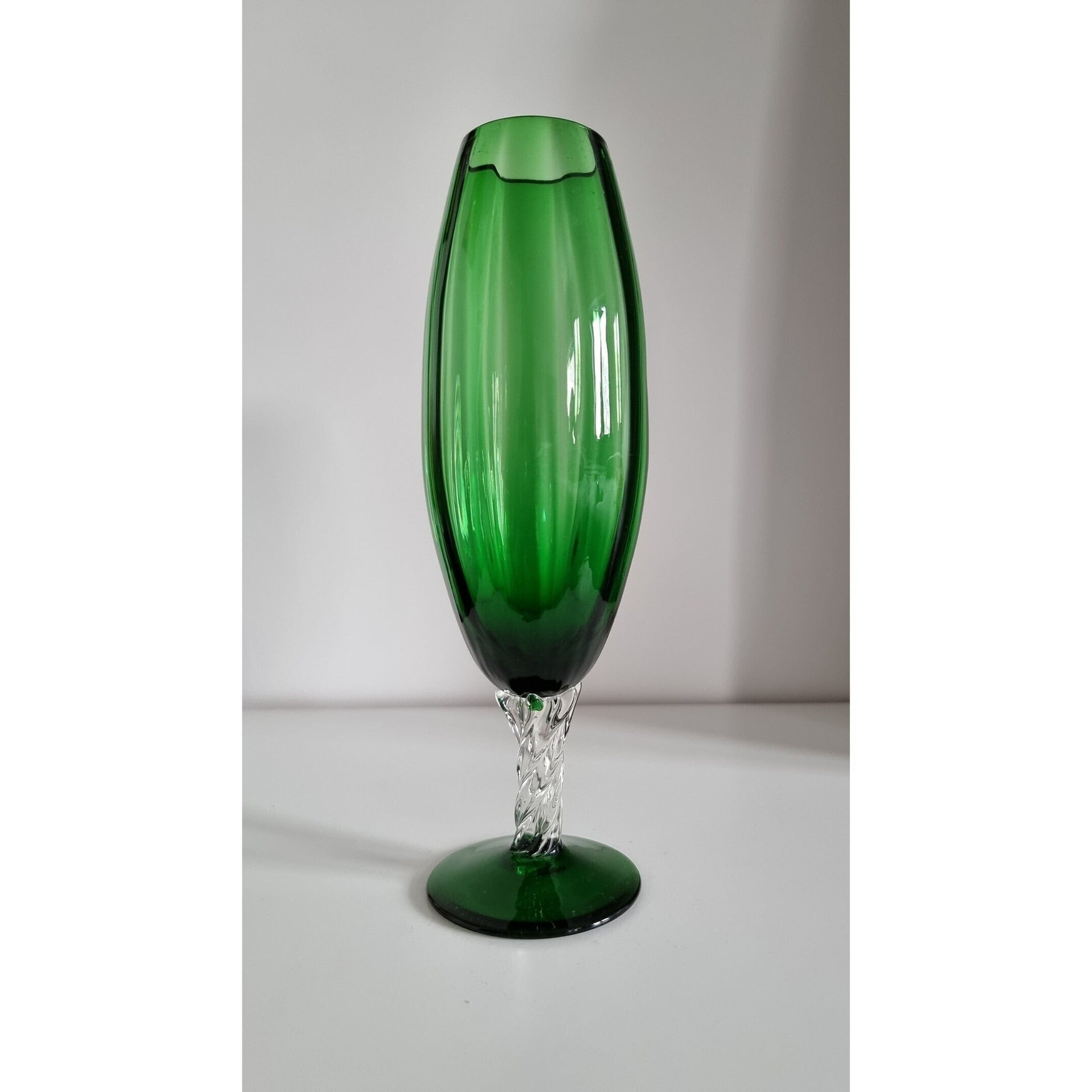 Vintage Italian Empoli green optic glass vase, clear twisted stem vase in beautiful condition.