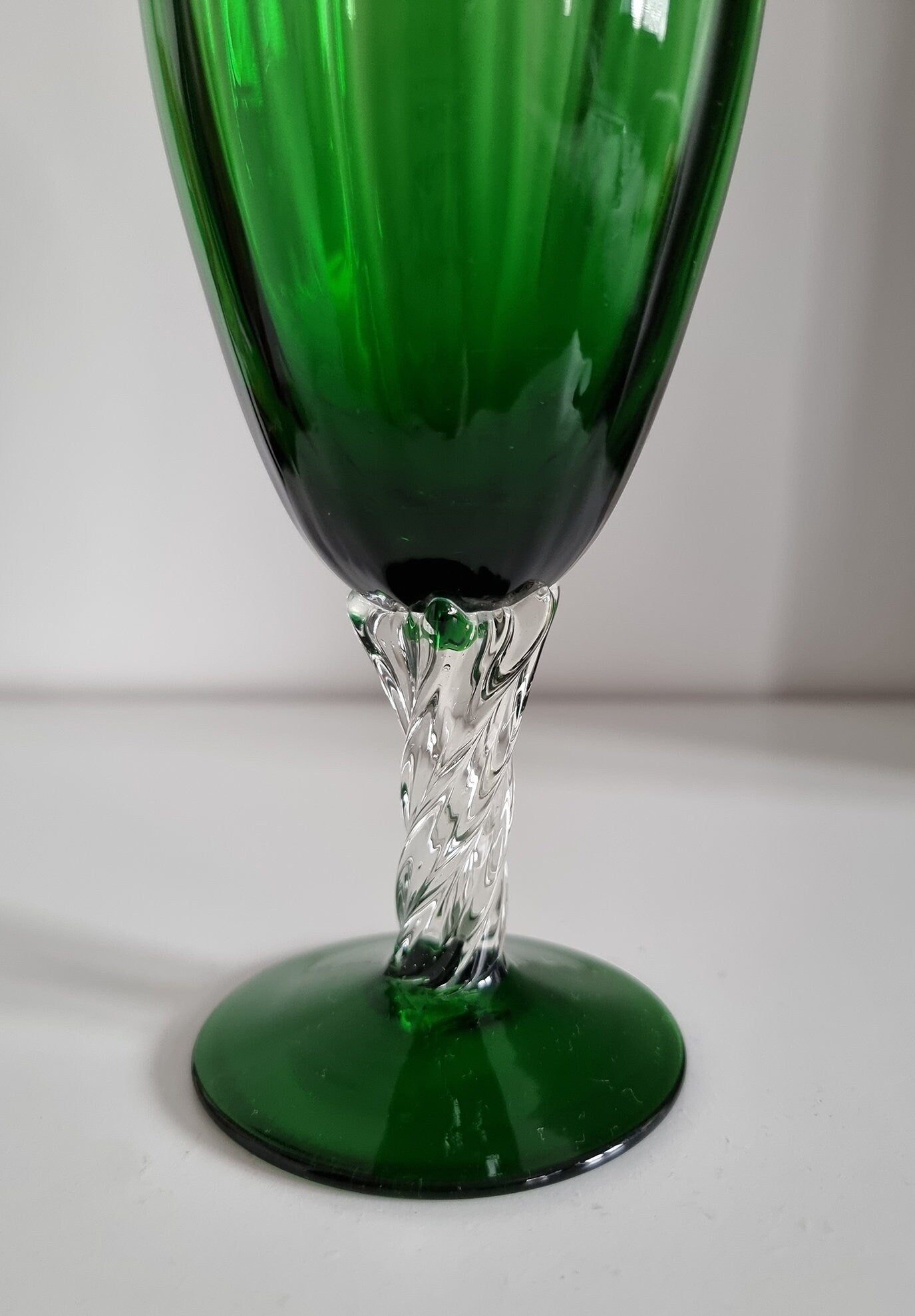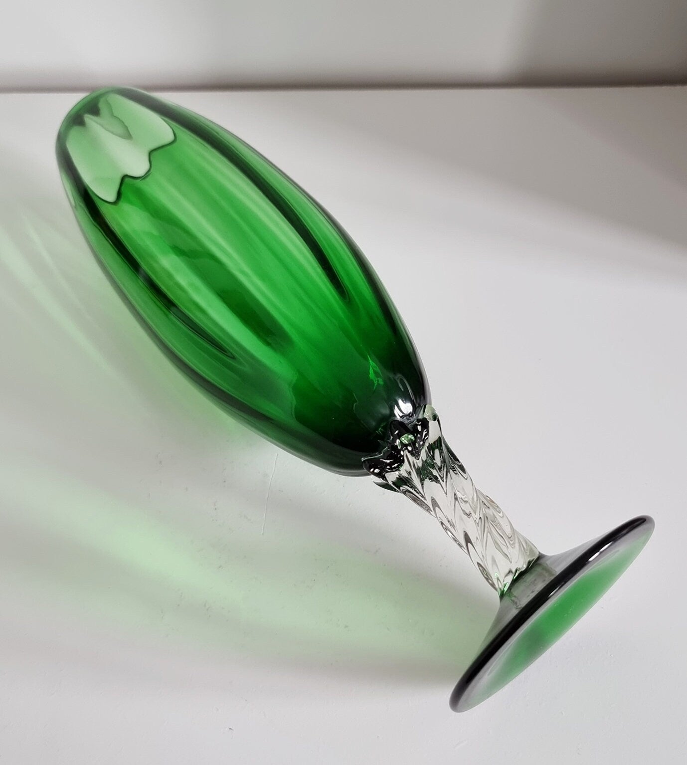 Vintage Italian Empoli Green Optic Glass Vase, Clear Twisted Stem Vase