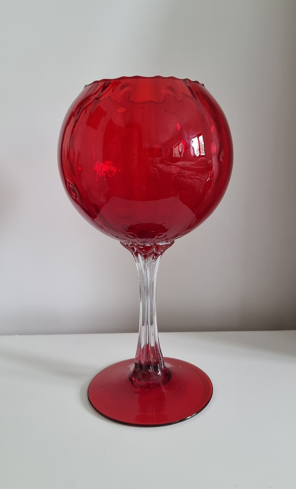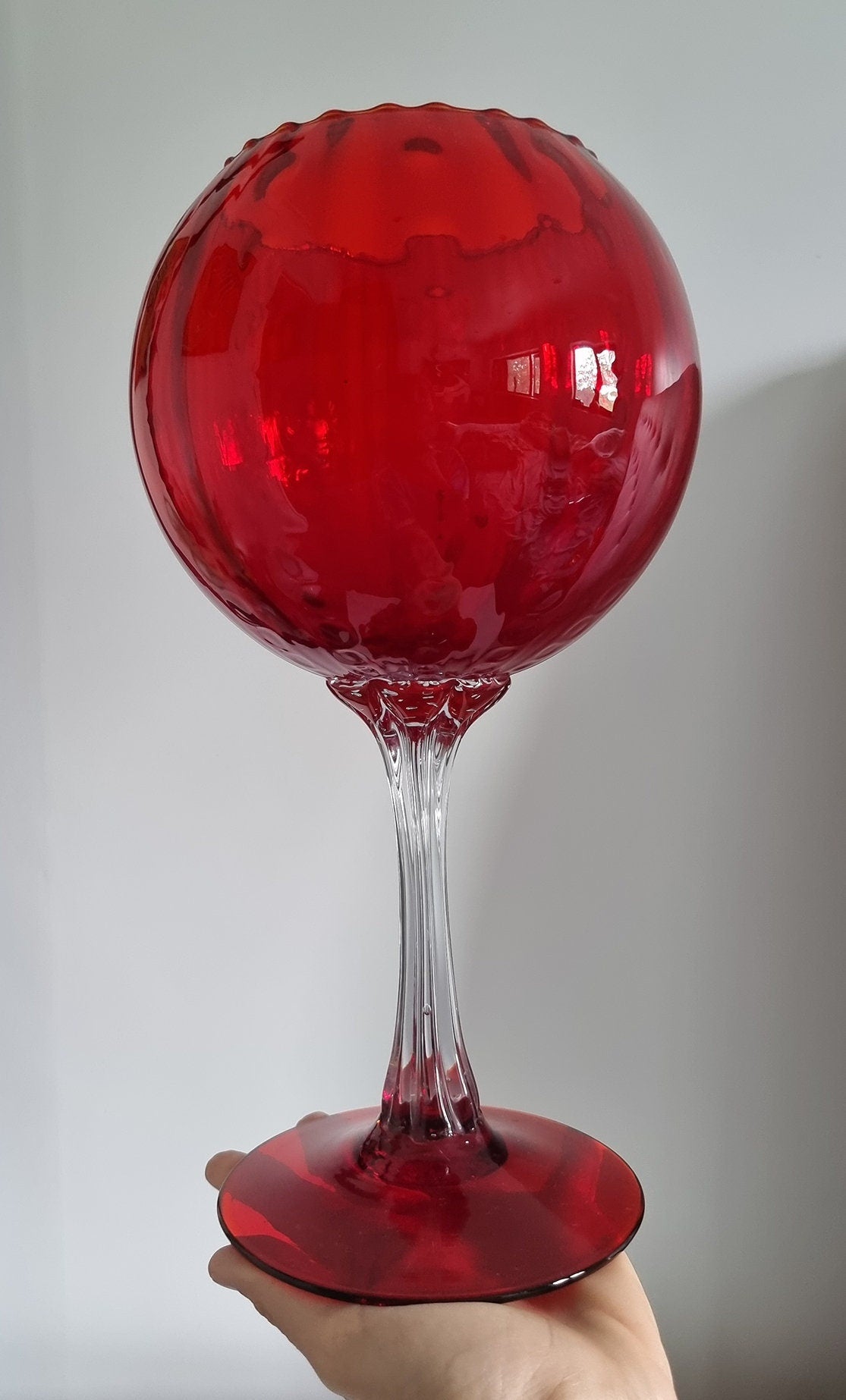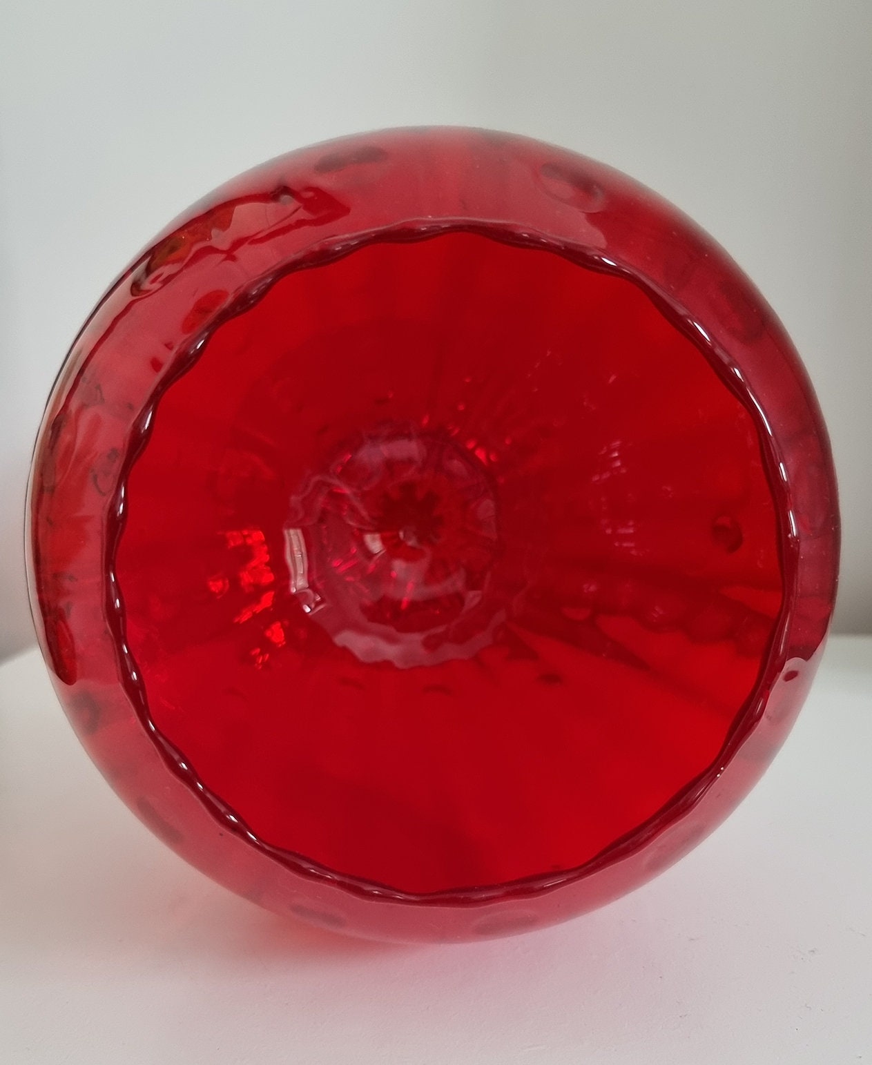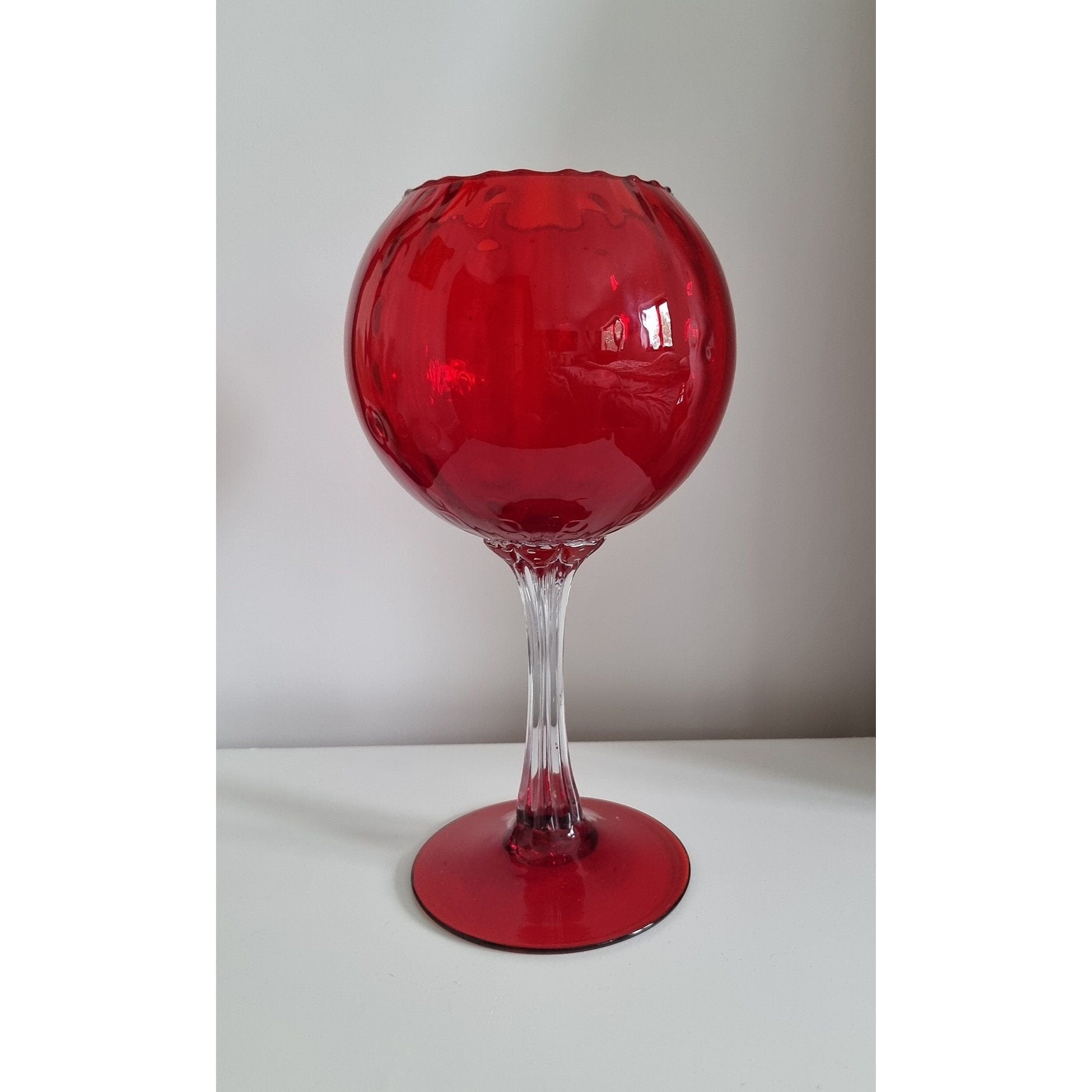 Vintage Italian Empoli Ruby Red Optic Balloon Glass Vase