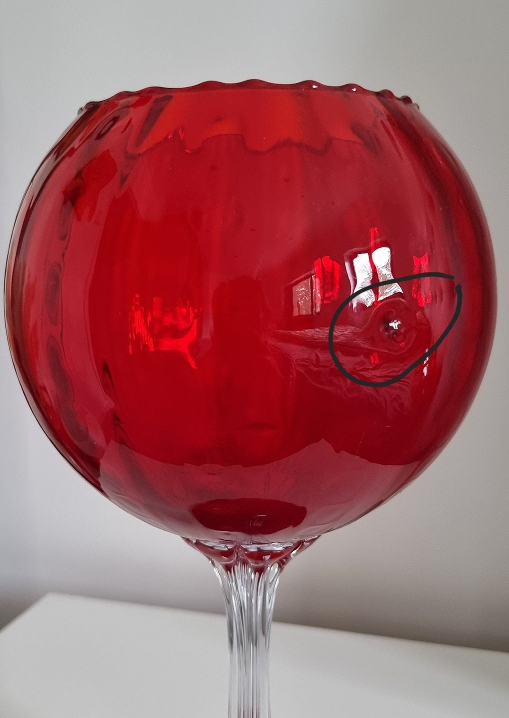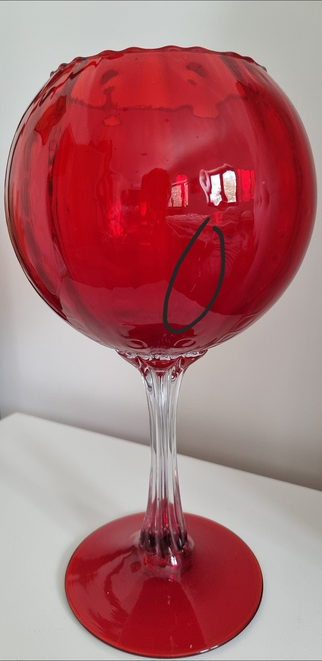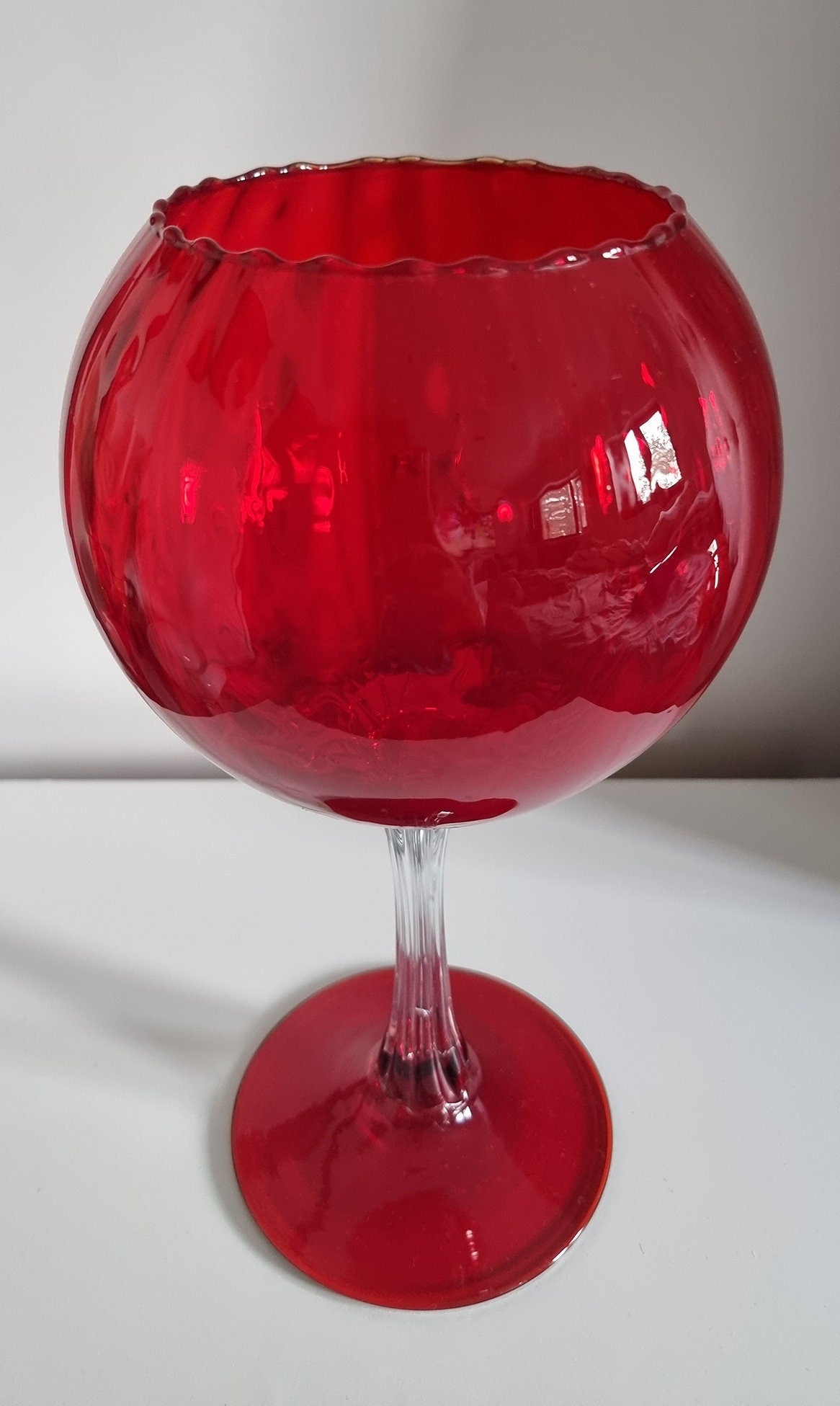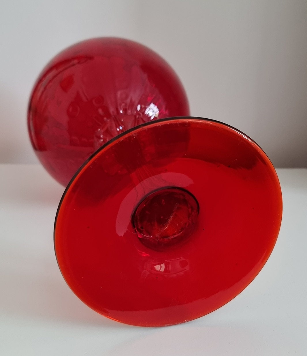 Vintage Italian Empoli Ruby Red Optic Balloon Glass Vase