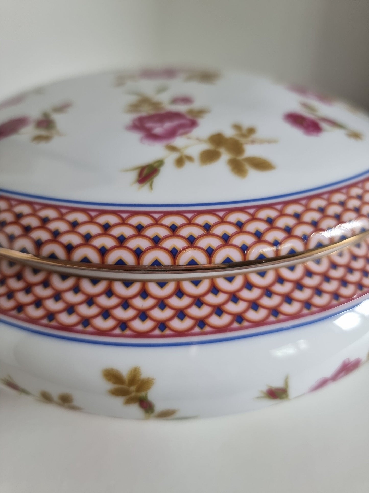 Vintage LG Porcelaine Dec. A La Main lidded pot/dish in beautiful condition.