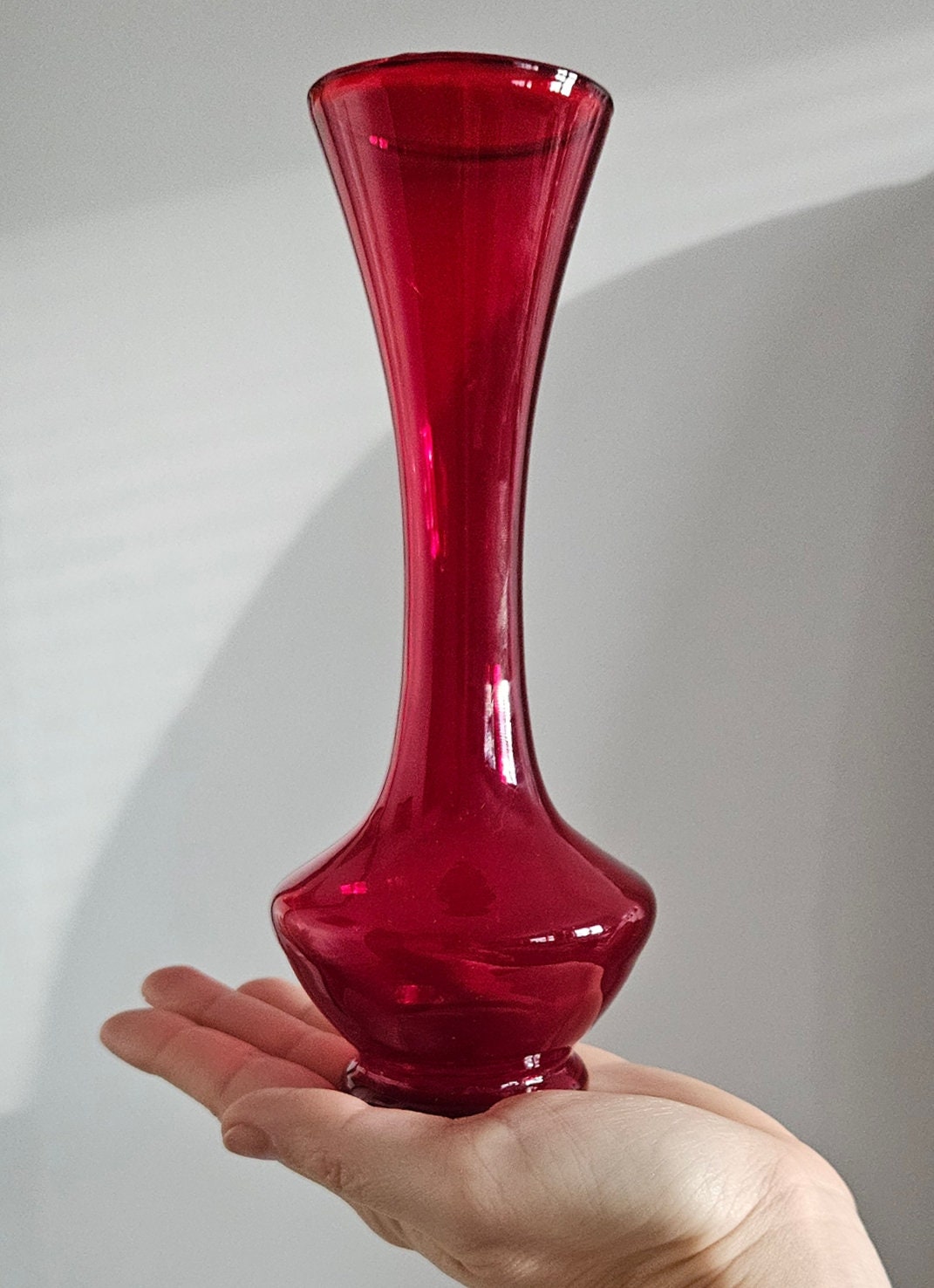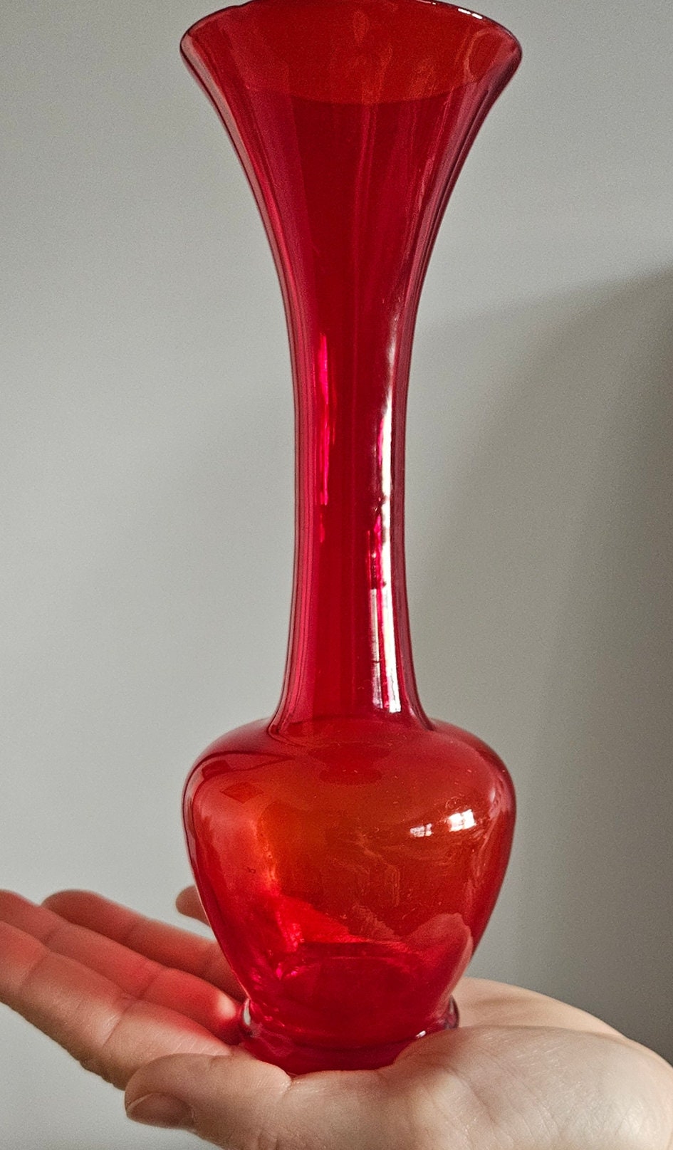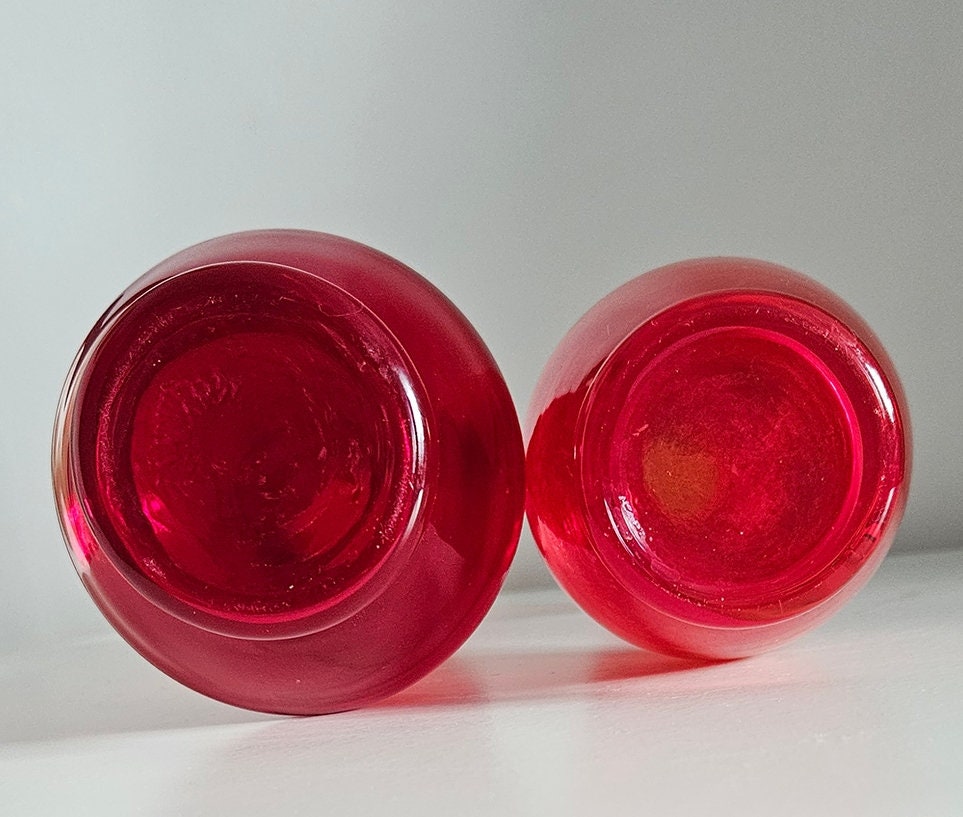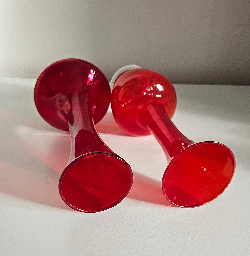 Add a touch of vintage charm to your decor with this delightful pair of small red bud vases.