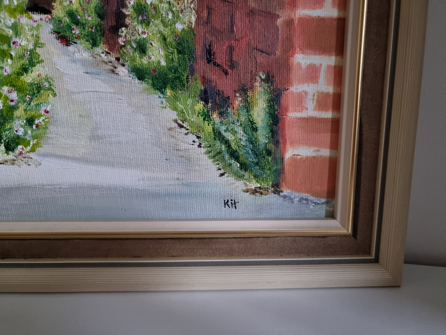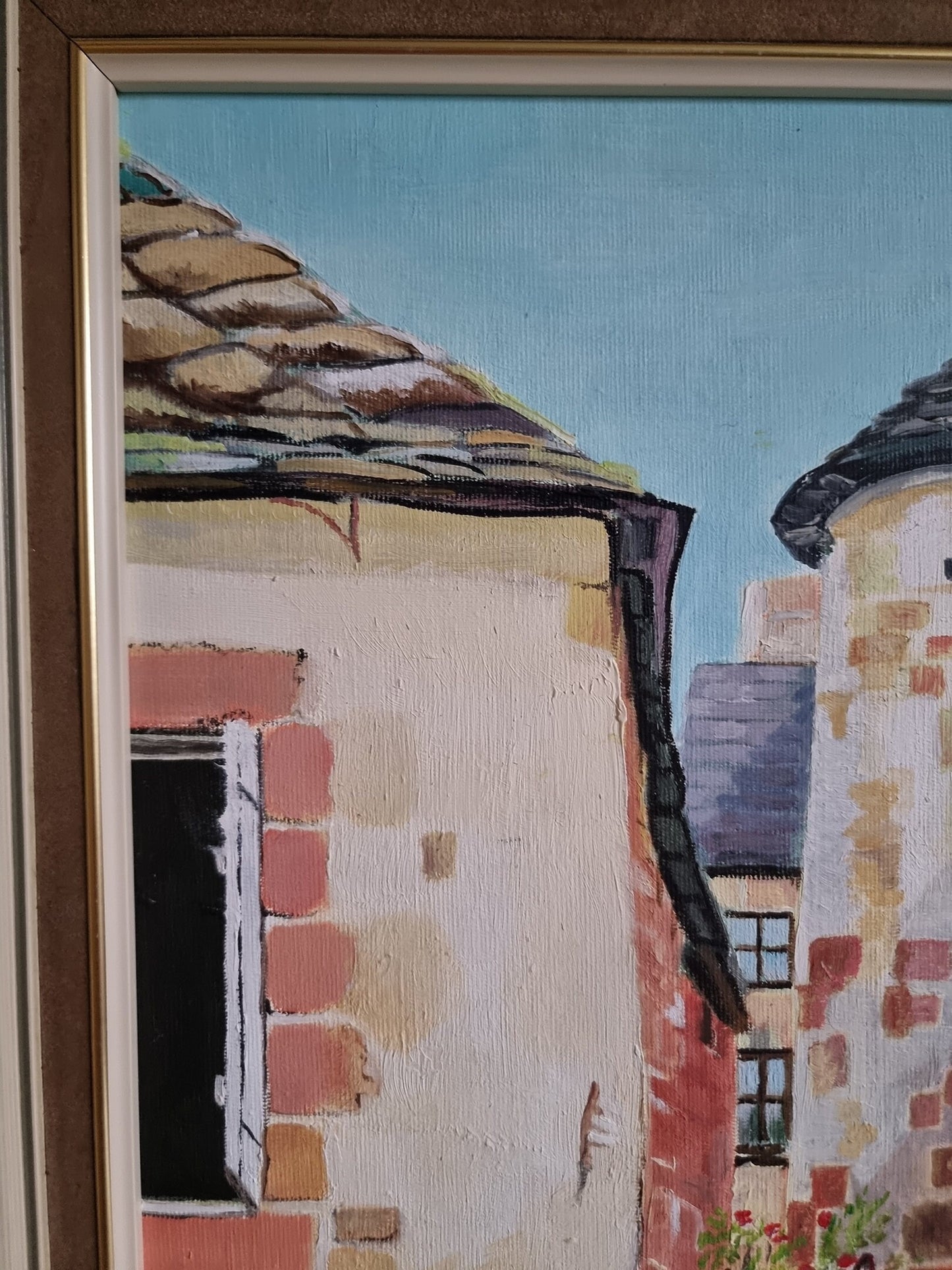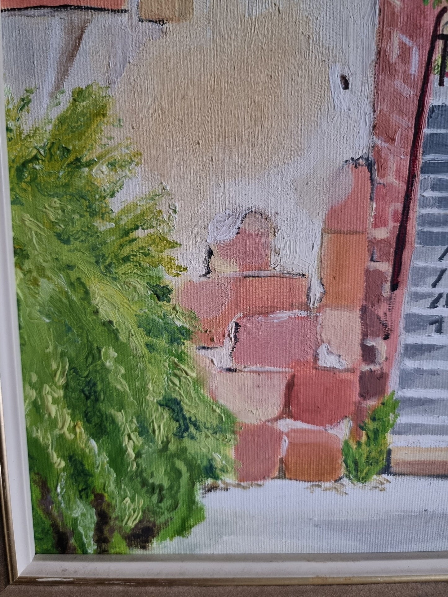 Vintage 'Rustic/mediterranean town' oil painting in beautiful condition, signed by artist.
