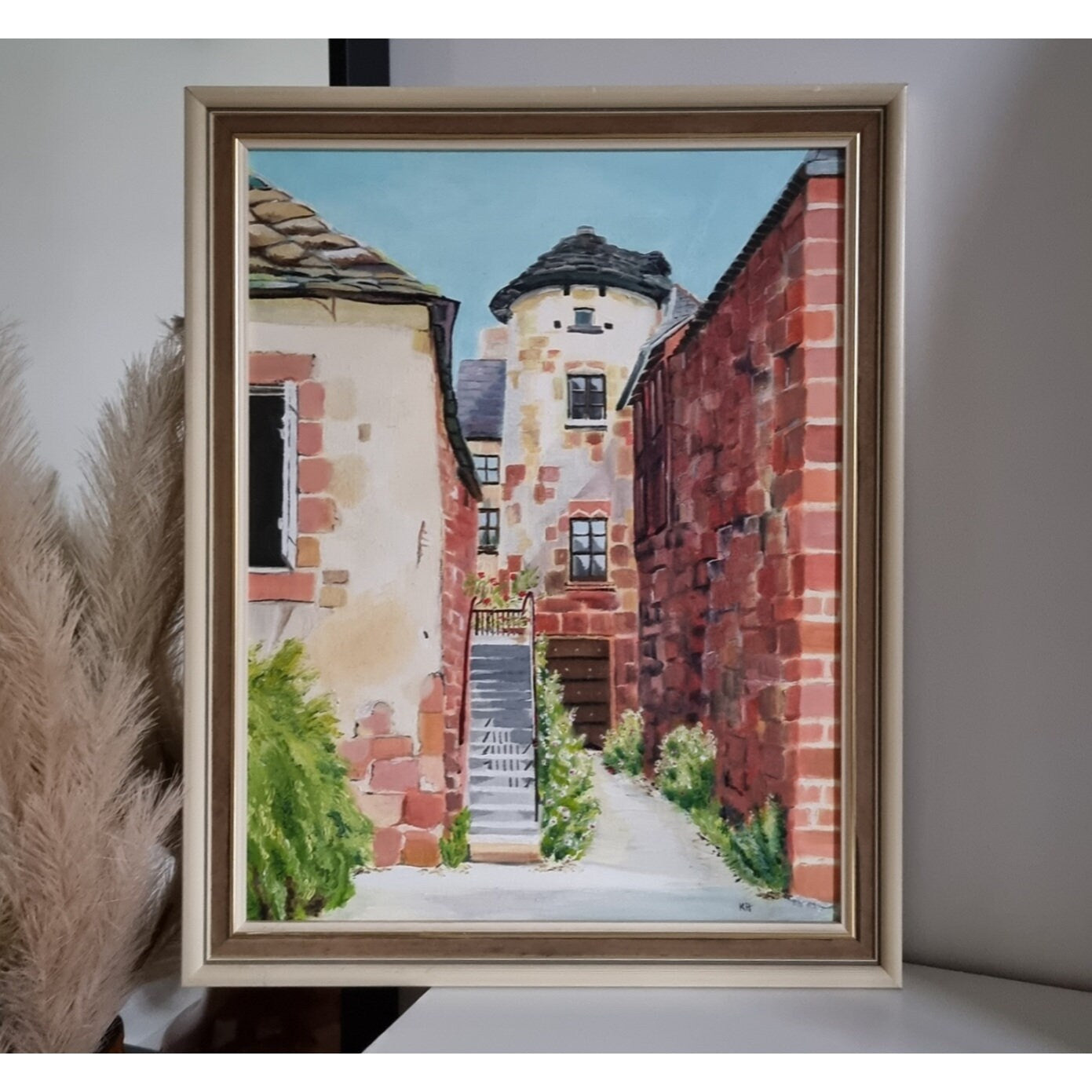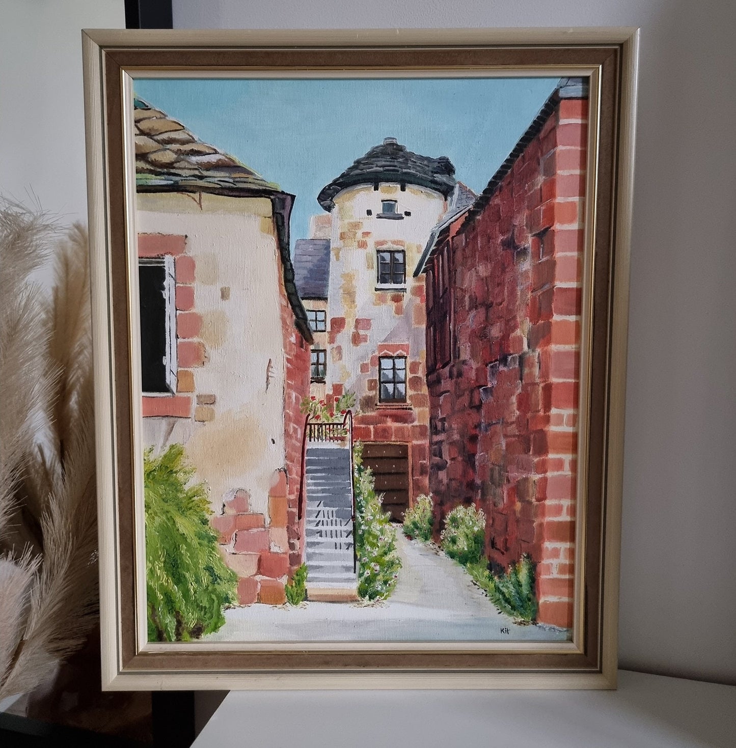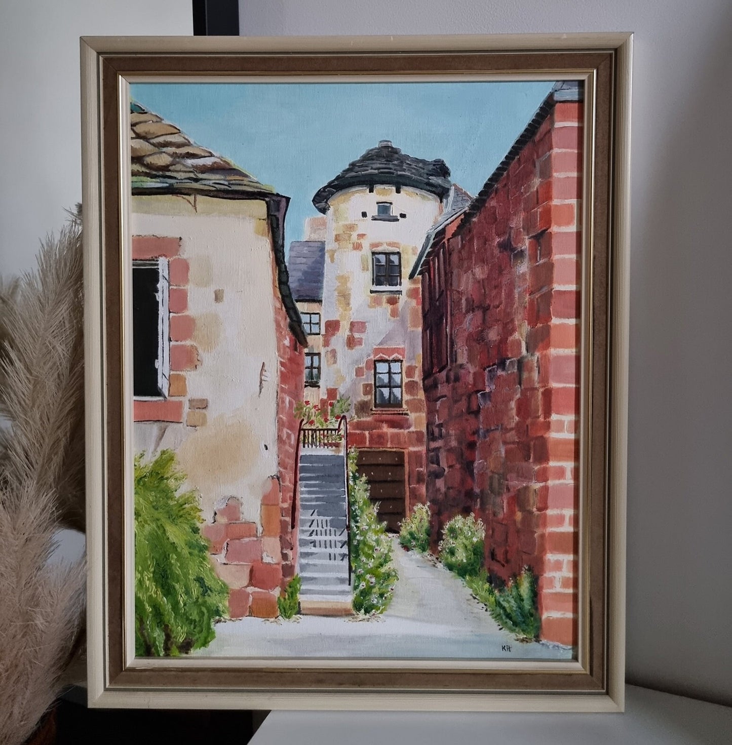 Vintage 'Rustic/mediterranean town' oil painting in beautiful condition, signed by artist.