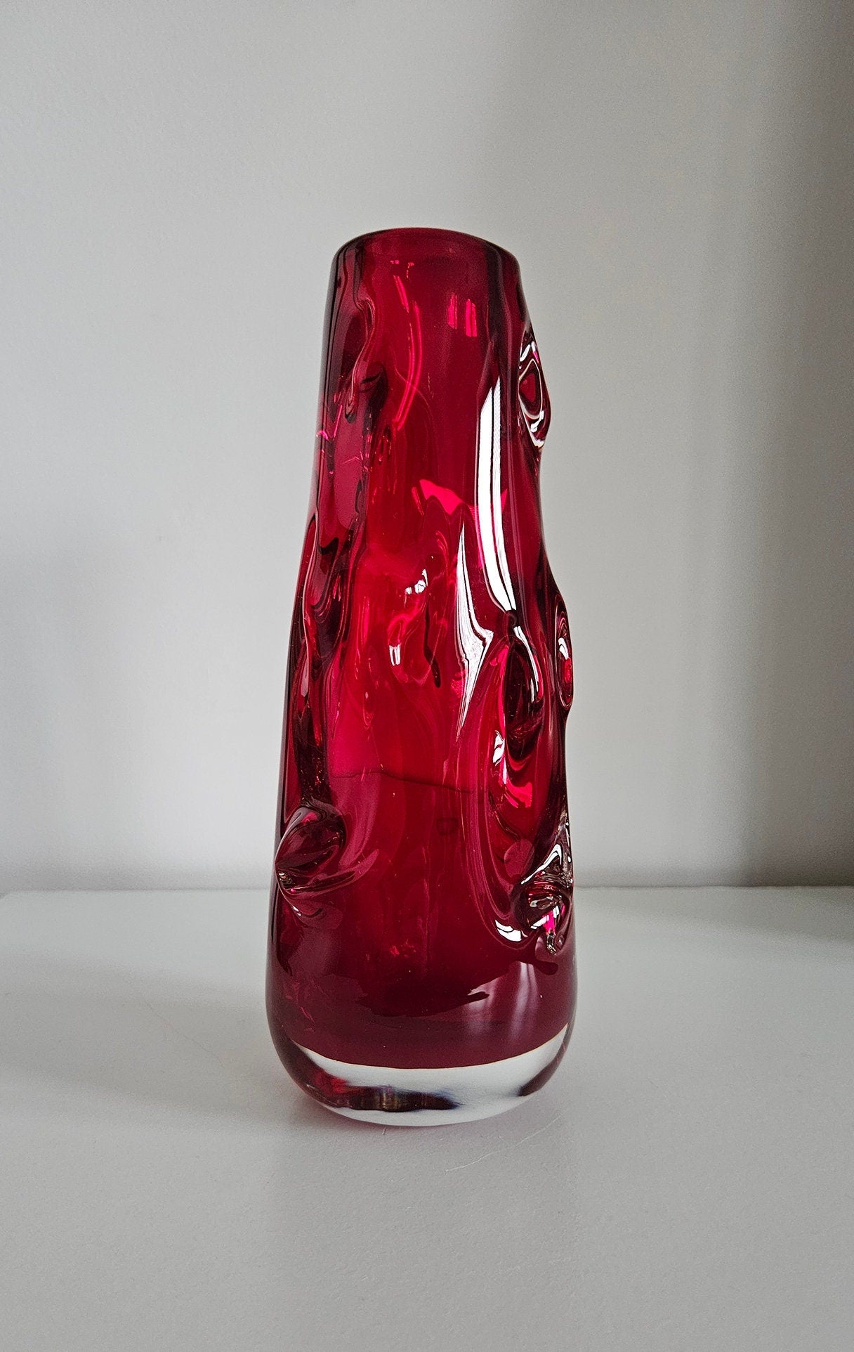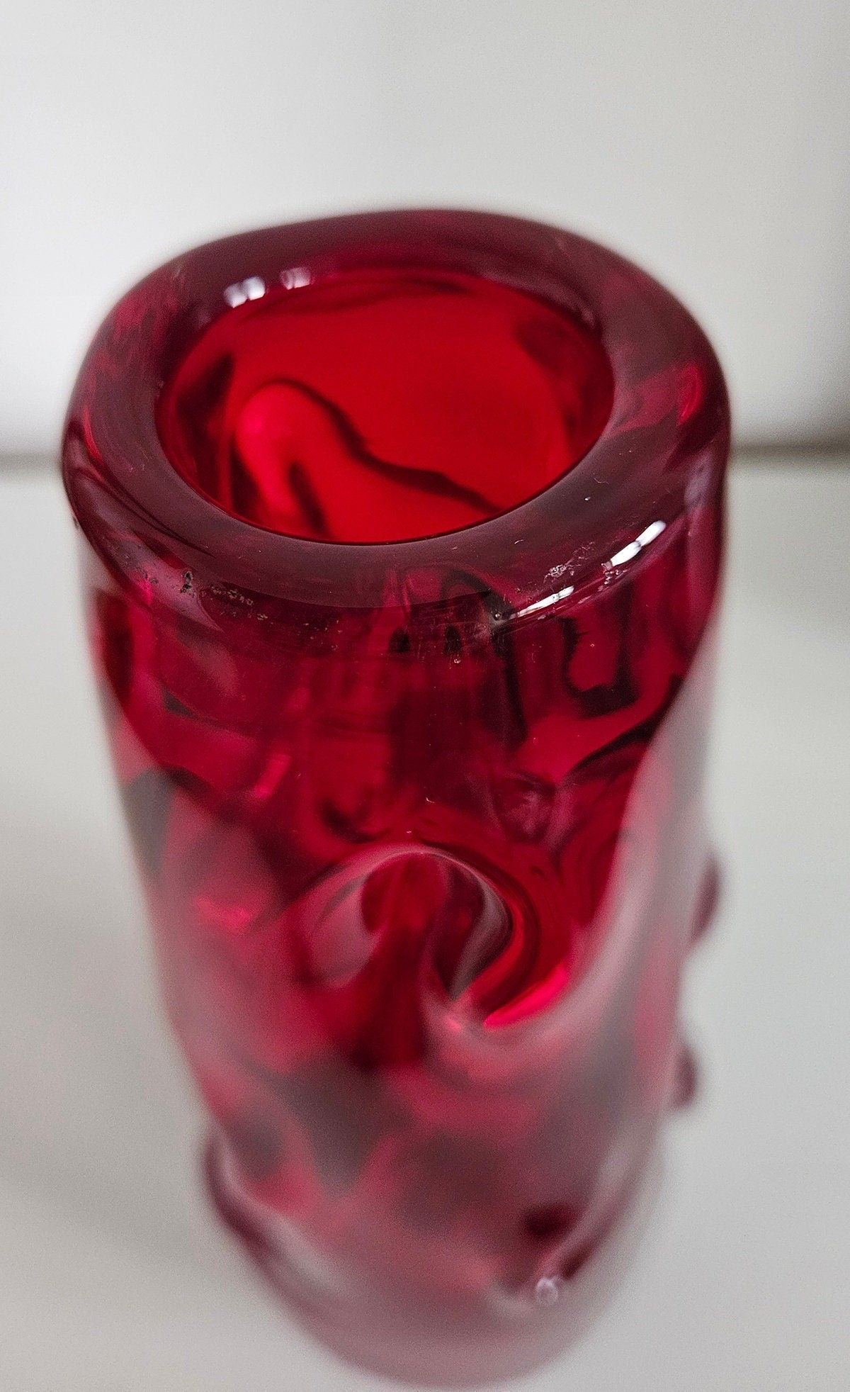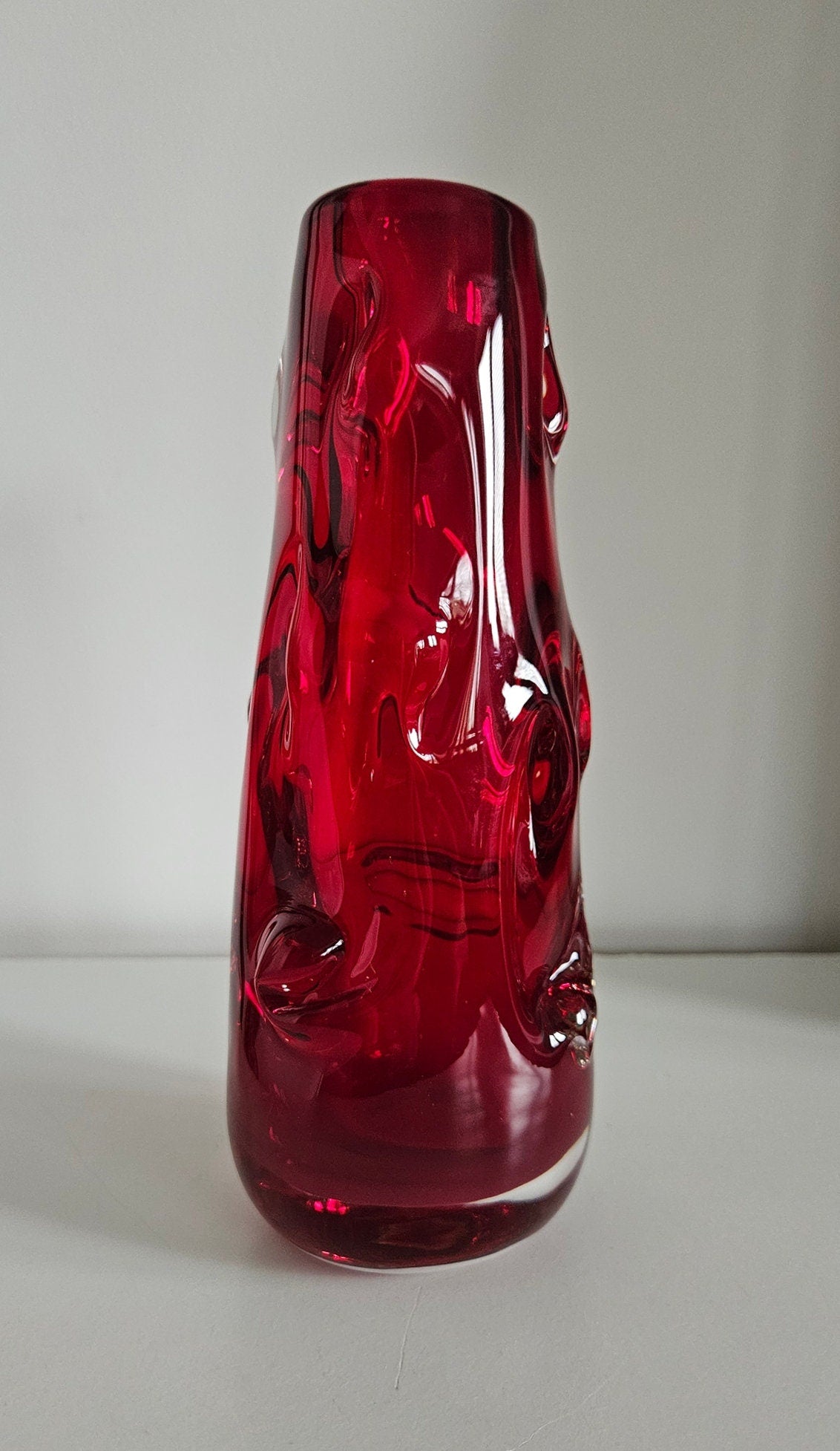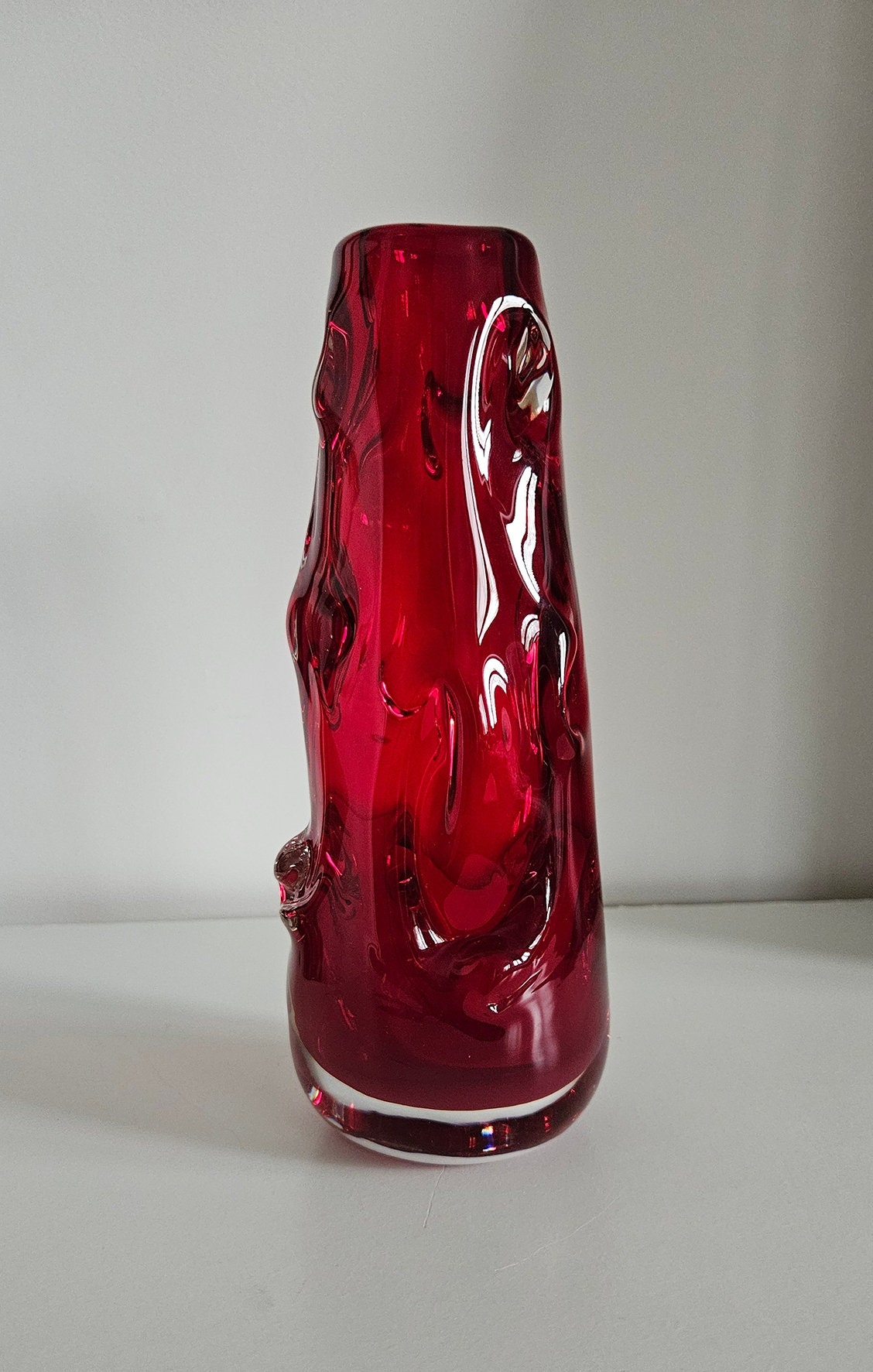 Vintage Whitefriars Ruby Red Glass Knobbly Vase